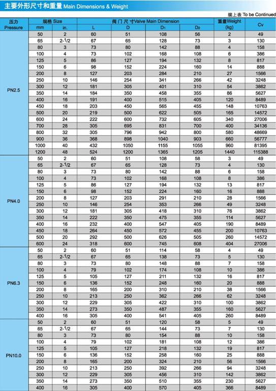 公稱通徑:DN50、DN65、DN80、DN100、DN125、DN150、DN200、DN250、DN300、DN350、DN400、DN450、DN500、DN600、DN650、DN700、DN750、DN800、DN900、DN1000、DN1050、DN1200。