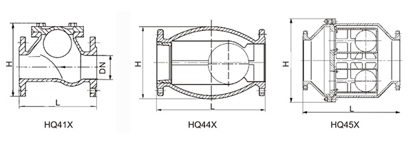 常見的無磨損球形止回閥型號有HQ41X-10、HQ41X-16、HQ44X-10、HQ44X-16、HQ45X-10、HQ45X-16。